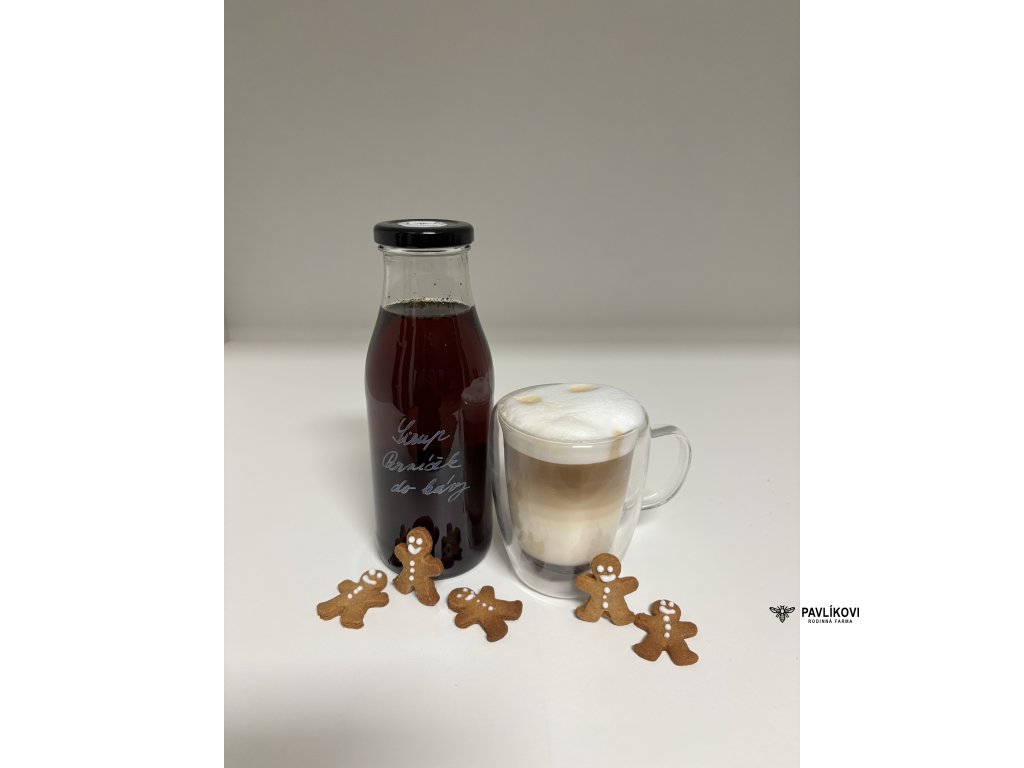 Složení: voda, třtinový cukr, perníkové koření (skořice, hřebíček, koření koriandr, fenykl, anýz, nové koření, muškátový květ a ořech, badyán).
